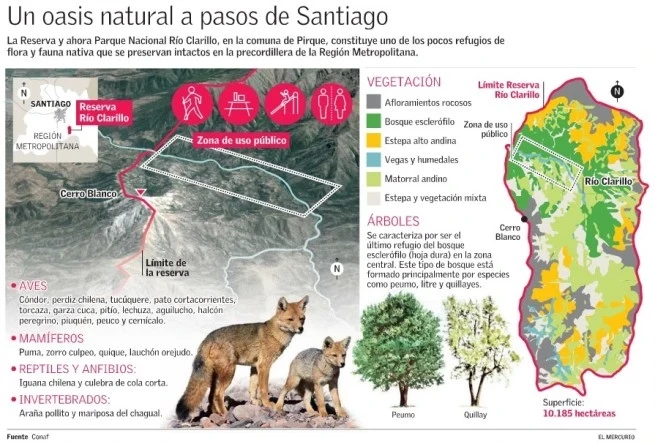 Explorar y aprender sobre el ecosistema del bosque esclerófilo, su biodiversidad única (incluyendo especies en peligro como la torcaza), la importancia hídrica del Río Clarillo y la conservación del patrimonio natural.